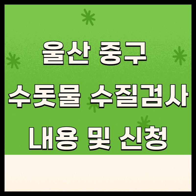 그럼 울산 중구 수돗물 안심확인제, 수질검사 신청 방법, 검사 항목, 검사 절차에 대해서 알아보겠습니다.