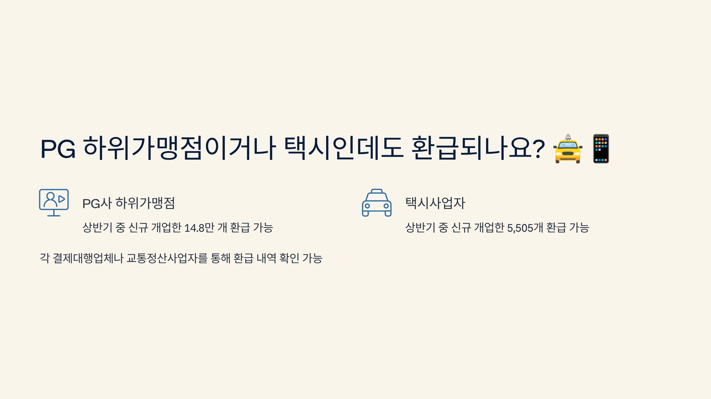 Q7. PG 하위가맹점이거나 택시인데도 환급되나요? 🚖📱