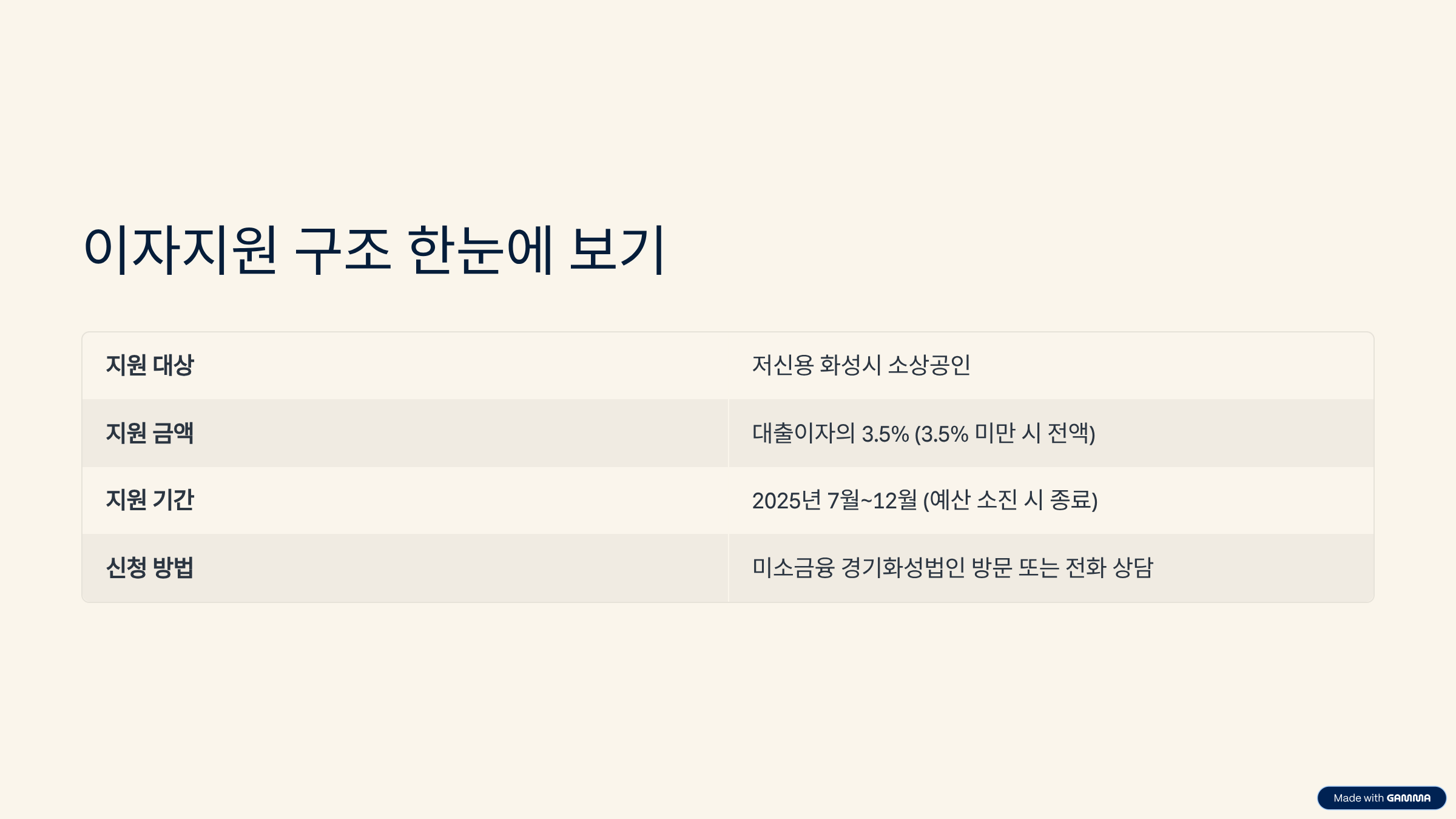| 지원 대상 | 저신용 화성시 소상공인 |