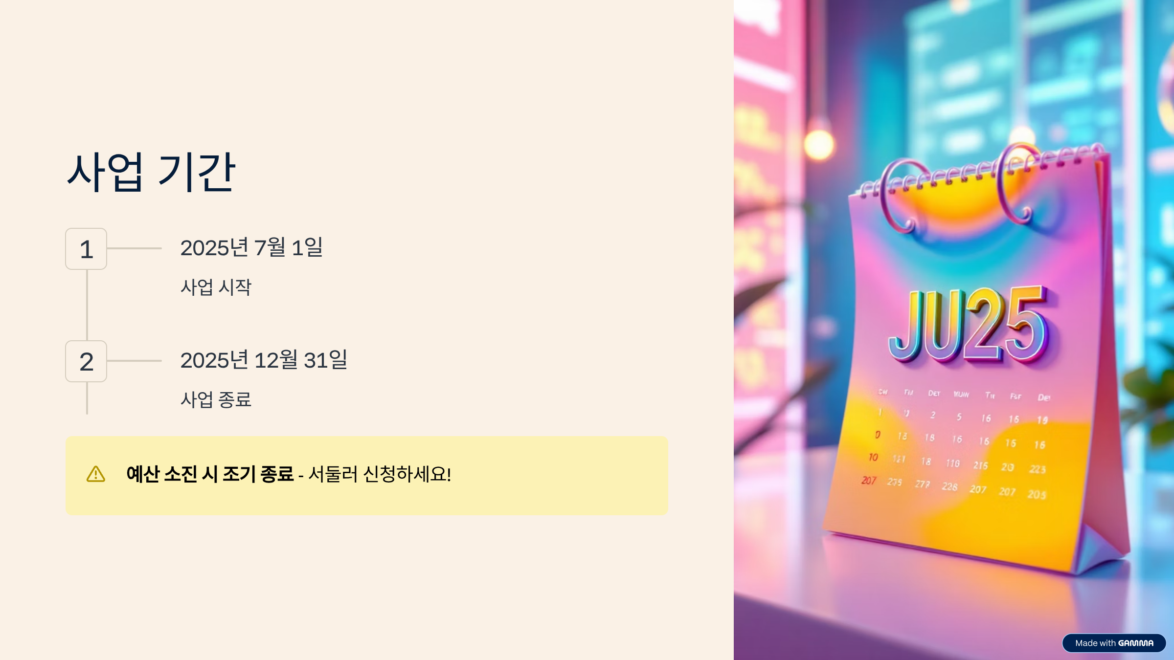 | 지원 기간 | 2025년 7월~12월 (예산 소진 시 종료) |