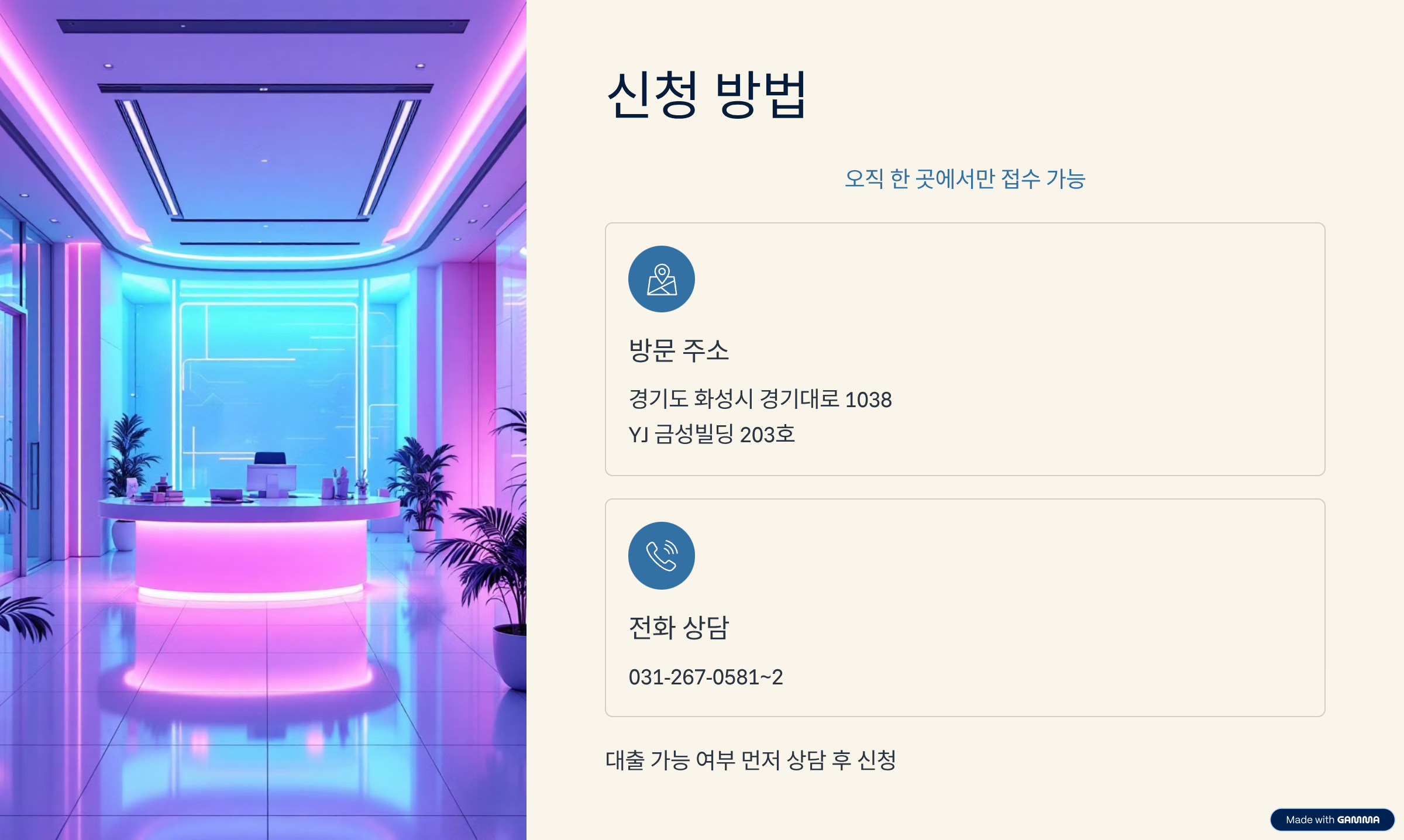 대출 가능 여부를 먼저 상담한 후 신청해야 하니, 무작정 방문하기보다는 전화부터 해보세요.