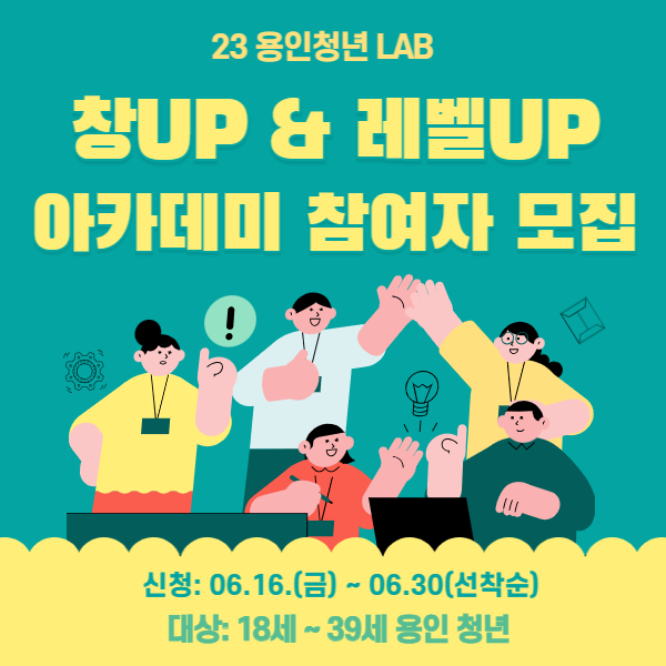 2023 용인청년 LAB 창Up 레벨Up 아카데미 참여자 모집 등록일 2023-06-16 13:37:26 조회수 20