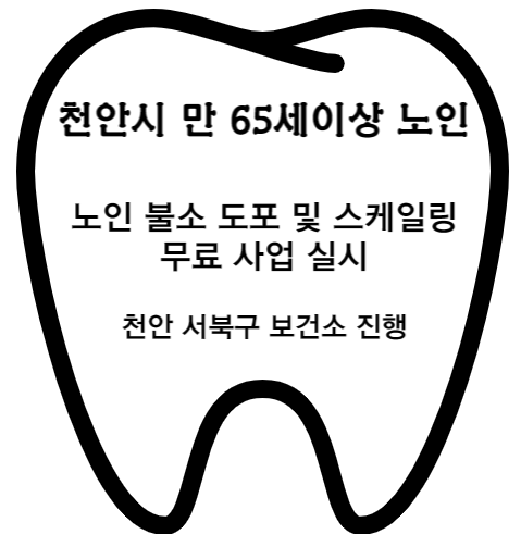 치아 건강은 오복 중 하나라는 말이 있을 정도로 매우 중요한데 천안시에서 만 65세 이상 노인 대상으로 구강건강 증진을 위해서 2023년 6월 19일(월요일)부터 천안시 서북구 보건소에서 불소 도포 · 스케일링 무료 사업을 진행하고 있습니다. 신청 및 내용 알아보겠습니다.