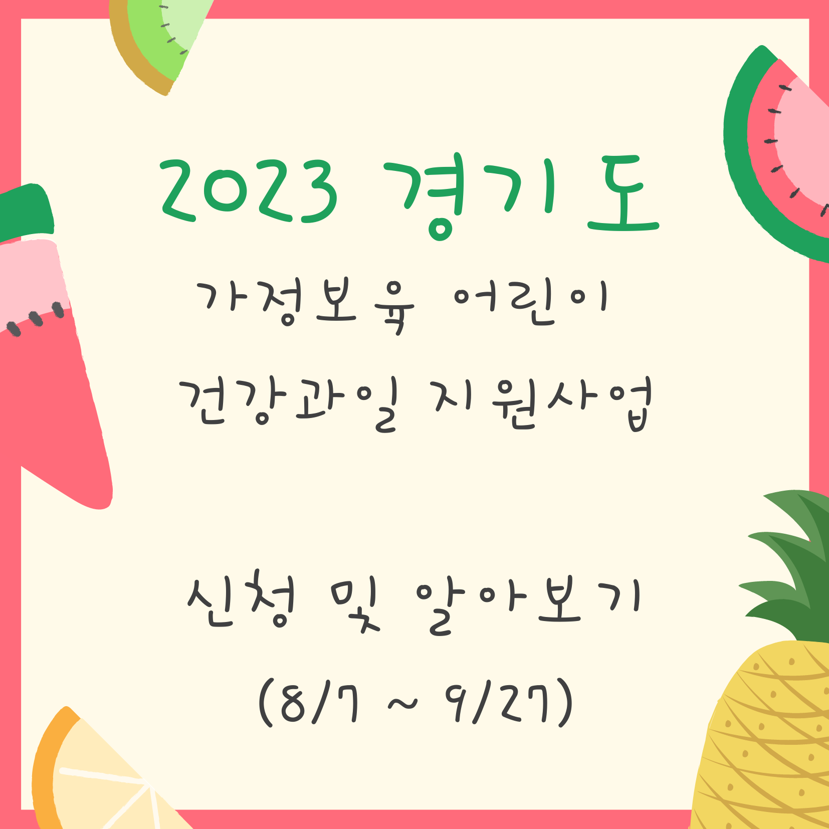 건강한 미래를 위한 씨앗, 경기도의 '가정보육 어린이 건강과일 지원사업'이 시작되었습니다. 어린이들의 건강한 성장을 위해 신선한 과일을 만나보세요. 신청방법은 아래 참고하시기 바랍니다.