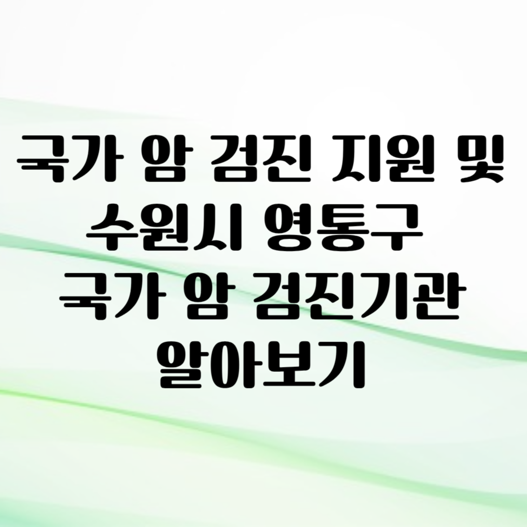 2023년 5월 3일 기준으로 수원 영통구에서 국가 암 검진을 실시하는 검진기관에 대해 알아보도록 하겠습니다.