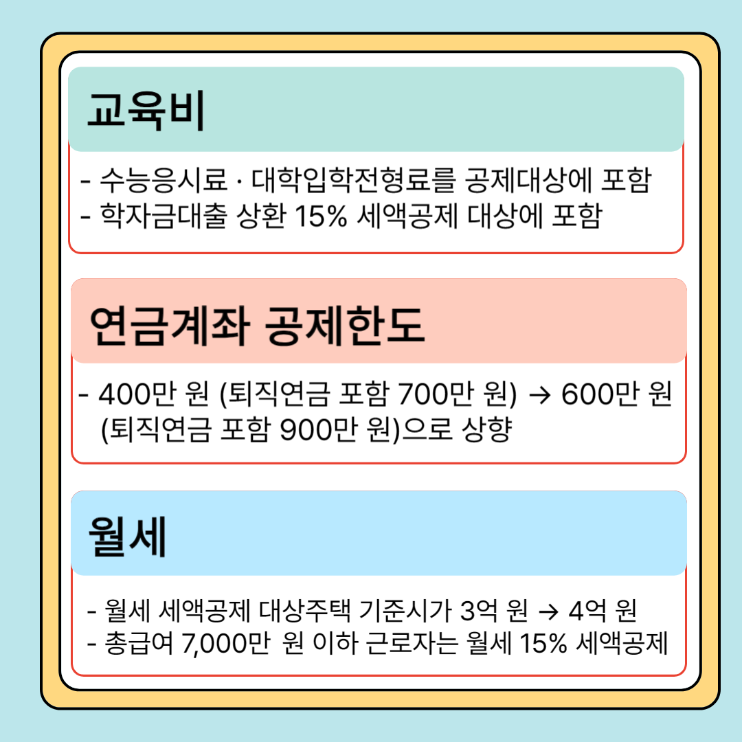 2023년 새로운 세법에 따라 교육비, 연금계좌, 그리고 월세에 대한 혜택이 변화됩니다.