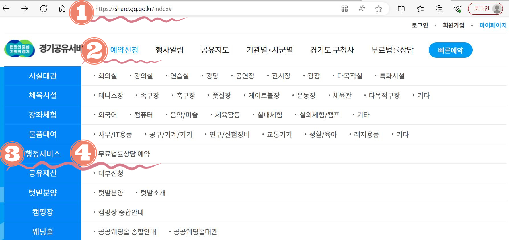 온라인 이용 방법 : 경기공유서비스