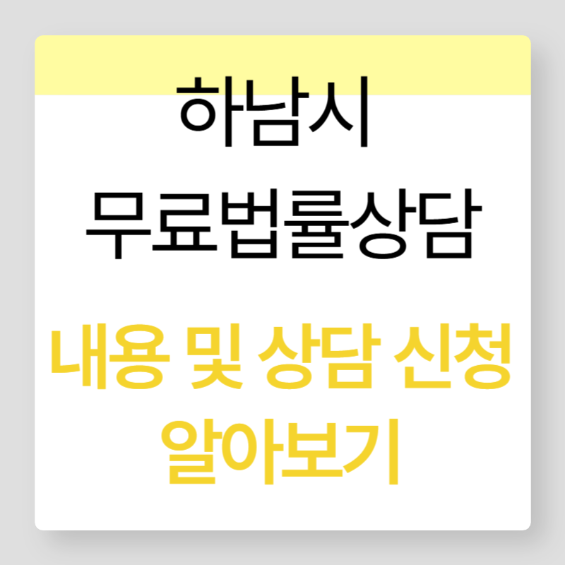 하남시는 민사, 형사, 가사 등 다양한 법률문제로 어려움을 겪는 시민을 위해 변호사, 법무사, 세무사, 노무사를 법률상담관으로 위촉하여 무료 법률 상담실을 운영하고 있습니다.